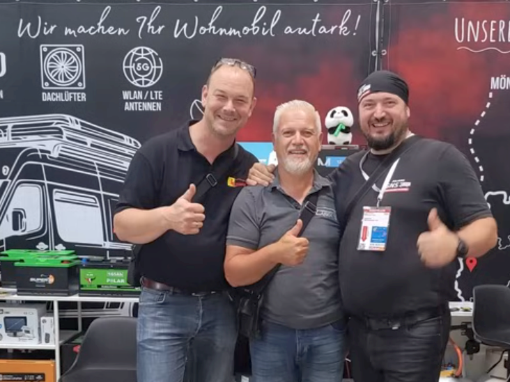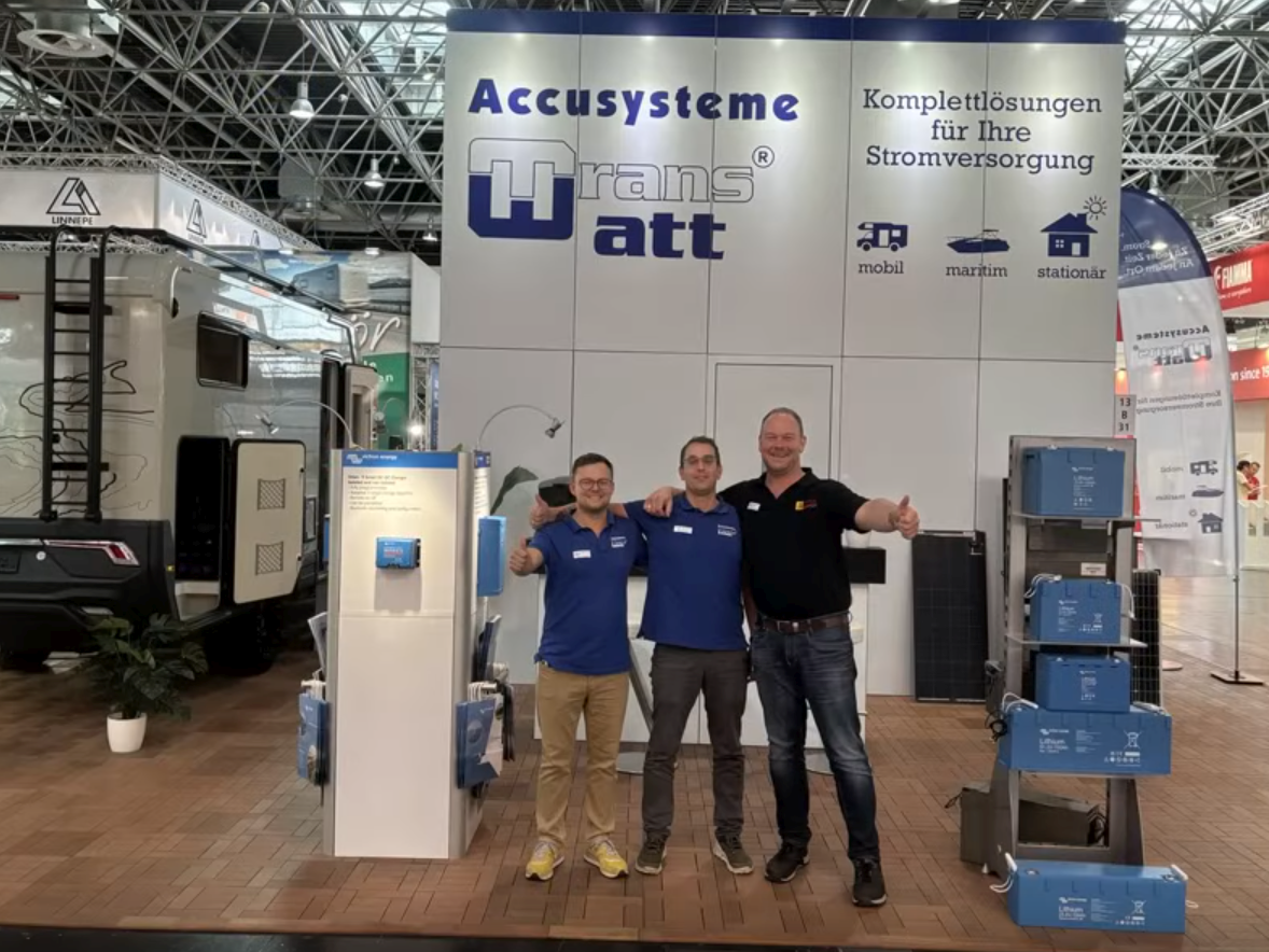 Das Angebot unseres Lieferanten Transwatt, auf dessen Messestand mitzuwirken, hat uns ebenso überrascht wie gefreut. Für Firmenchef Ansgar Philippskötter war der Dienst auf dem Stand eine ganz neue Erfahrung. Kannte er sonst Messen nur als Fachbesucher, stand er nun mit dem Inhaber und den Kollegen von Transwatt beratend zahlreichen am mobilen und autarken Reisen interessierten Menschen Rede und Antwort. Der direkte Zugriff auf die Exponate der Firma Transwatt und Victron Energy gestaltete die Beratungen sehr effektiv. Zahllose Gespräche wurden geführt, neue Kontakte geknüpft und bestehende gepflegt.